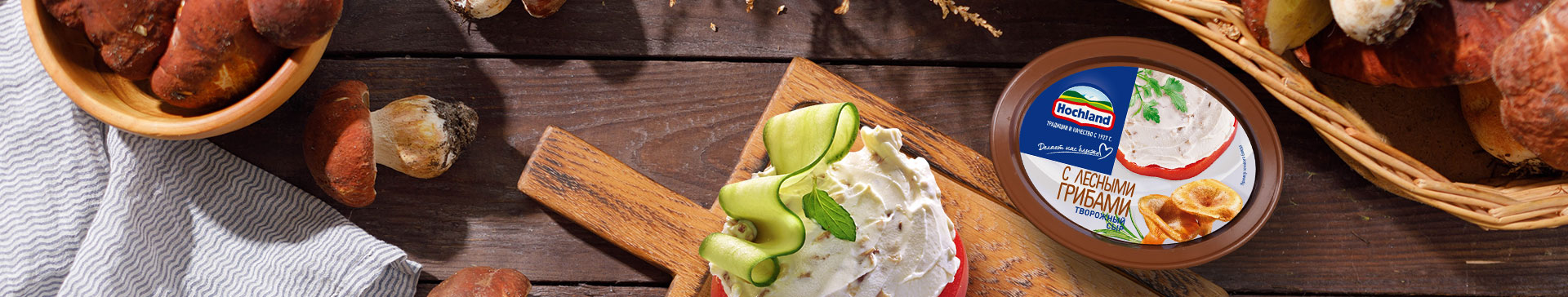 Творожный сыр Hochland с лесными грибами сделан из творога, приготовленного из натуральных сливок и молока. Это превосходная комбинация мягкого сливочного вкуса с пряным акцентом настоящих грибов. Сыр отлично намазывается, подходит для приготовления легких бутербродов и сэндвичей, закусочных рулетов, прекрасно сочетается со свежими и печеными овощами.