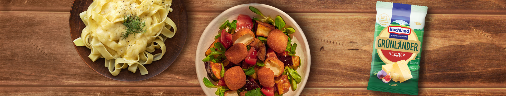 Grünländer "Чеддер " яркий молочный вкус для особых моментов. Производится по особой рецептуре по заказу компании Hochland из отборных ингредиентов по технологии естественного созревания без добавления консервантов и красителей. Естественно созревает - естественно вкусно!