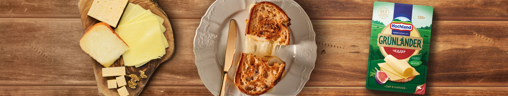 Grünländer "Чеддер " - яркий молочный вкус для особых моментов. Производится по особой рецептуре по заказу компании Hochland из отборных ингредиентов по технологии естественного созревания без добавления консервантов и красителей. Естественно вкусный сыр в формате нарезки 130г, которую удобно хранить после вскрытия!