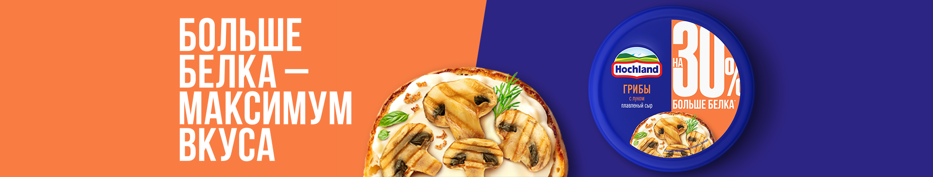 Больше белка, максимум вкуса! Инновация в ассортименте Hochland – плавленый сыр «Грибы с луком» в ванночке 230г.