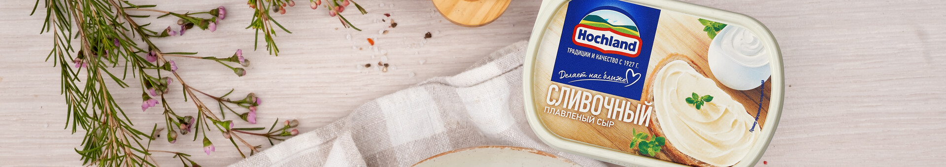 Сливочный плавленый сыр Hochland обладает нежным вкусом и тает во рту. Он изготавливается из классического натурального сыра. И на ломтике хлеба, и на хрустящем крекере он станет отличным началом вашего дня. Кроме того, сливочный плавленый сыр Hochland идеально подходит для кулинарии – как для горячих, так и холодных блюд. Он придает блюдам сливочный вкус и тягучую консистенцию сыра.