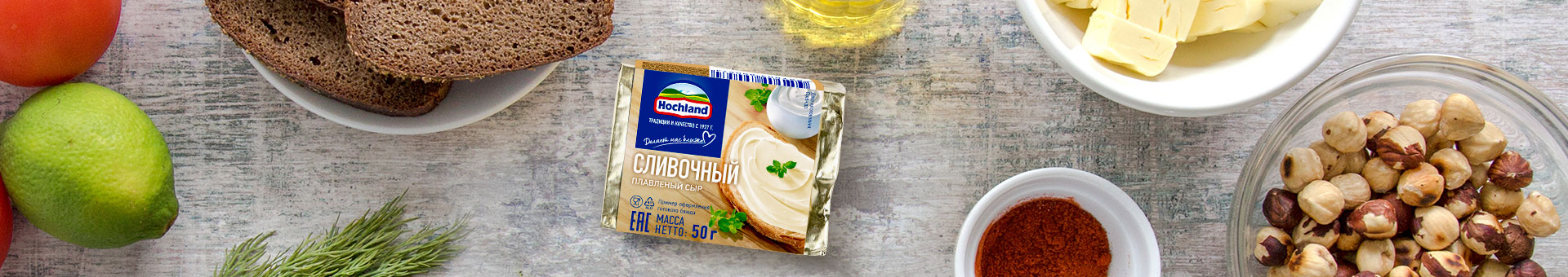 Плавленый сыр Hochland Сливочный в фольге – классический формат упаковки, который знаком всем с детства. Блочок плавленого сыра Hochland отличается своей универсальностью – его одинаково удобно использовать как в качестве снека или для бутерброда, так и для кулинарии. Нежный сливочный вкус плавленого сыра Hochland станет прекрасным дополнением к любому блюду.