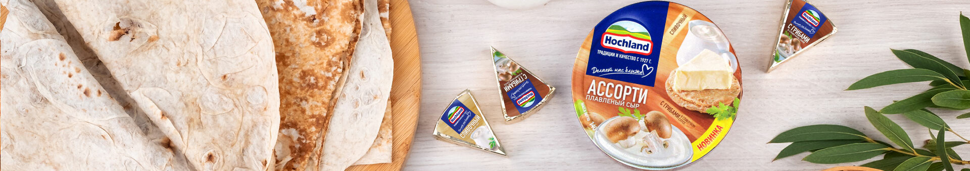 Новое ассорти Hochland С грибами изготовлено из натурального сыра. Оно удивит и порадует любителей полакомиться плавленым сыром!