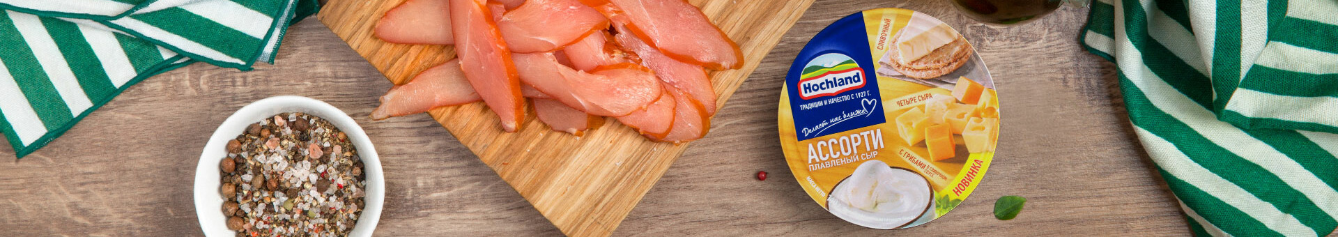 Новое желтое ассорти плавленого сыра Hochland сочетает в себе три ярких, но в то же время классических вкуса.