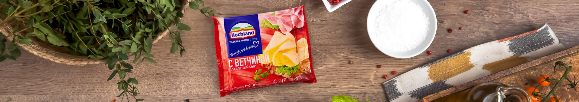 Плавленый сыр Hochland с ветчиной – один из самых популярных вкусов! Ломтики Hochland содержат большое количество сочных кусочков настоящей ветчины, а форма ломтика идеально подойдет для самого сложного бутерброда. Благодаря удобному формату упаковки любимым вкусом плавленого сыра можно насладиться в любой ситуации – будь то на работе, в дороге или на пикнике.