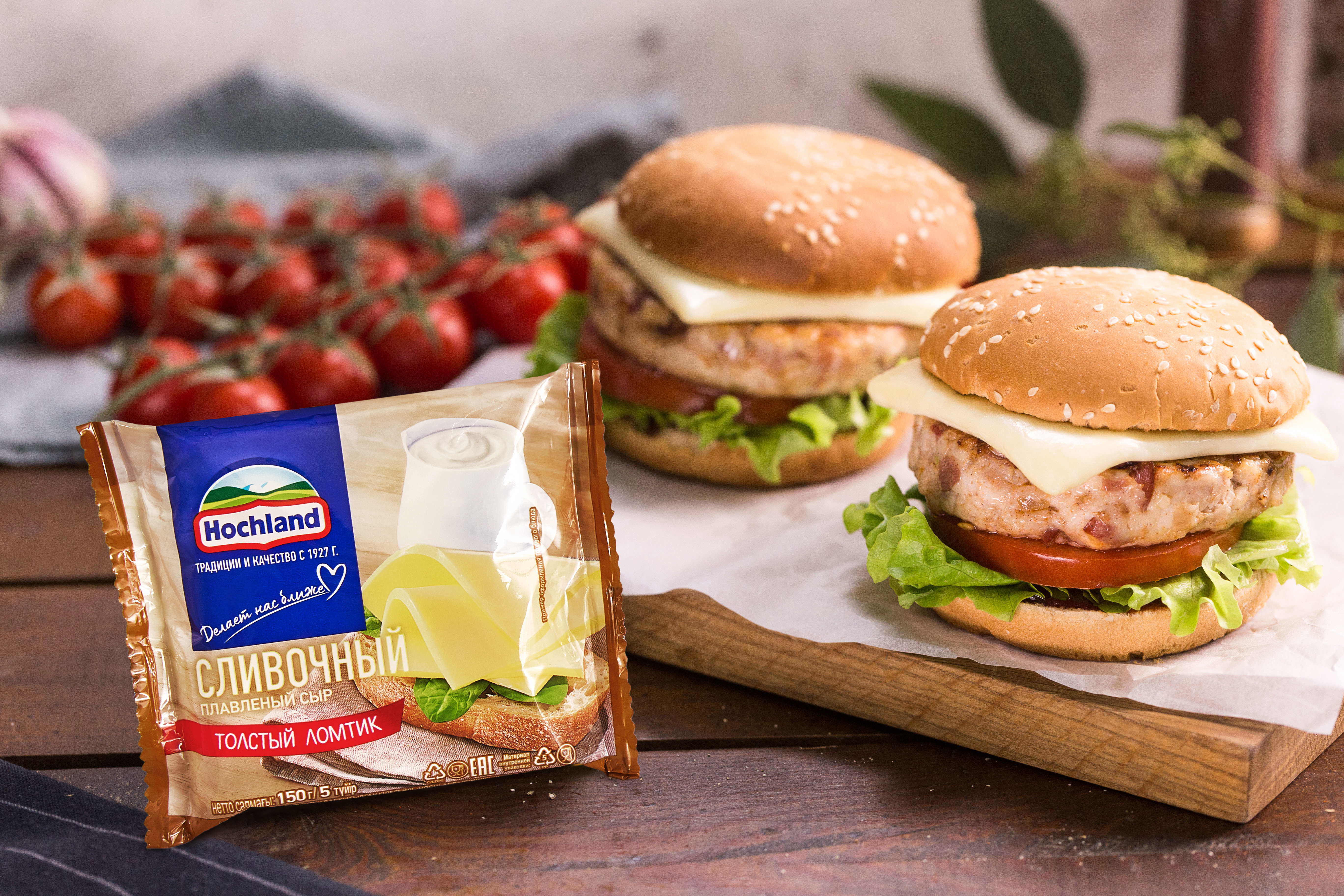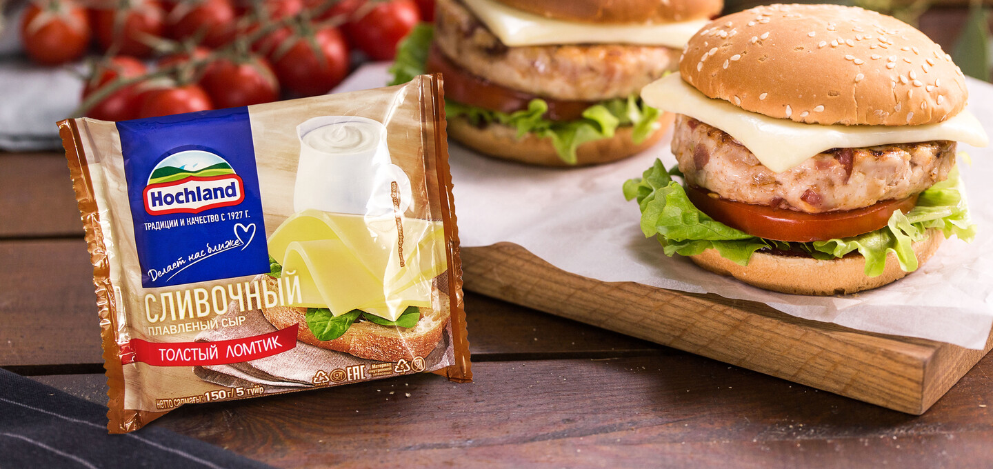 - Плавленый сыр Hochland сливочный классический — 2 ломтика