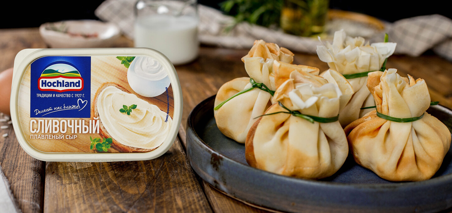 - плавленый сыр Hochland “Сливочный” — 3-4 ст. л.