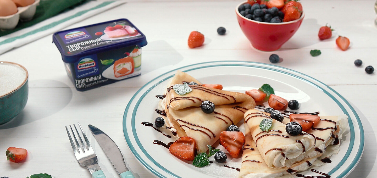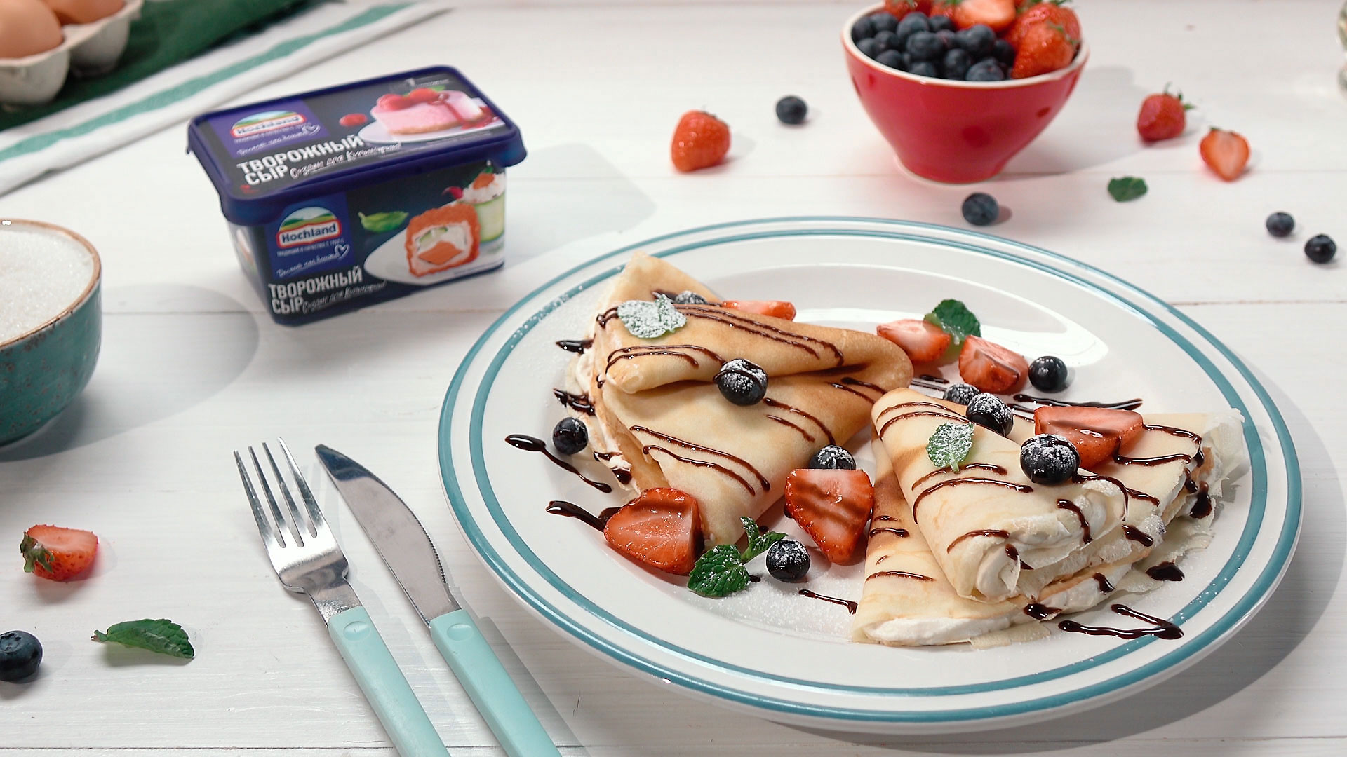 - Подаем, украсив шоколадным соусом, свежими ягодами, мятой и сахарной пудрой (по желанию).