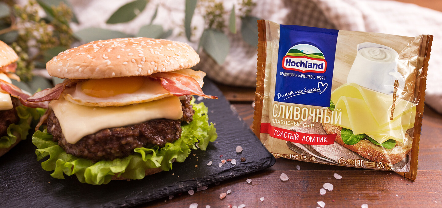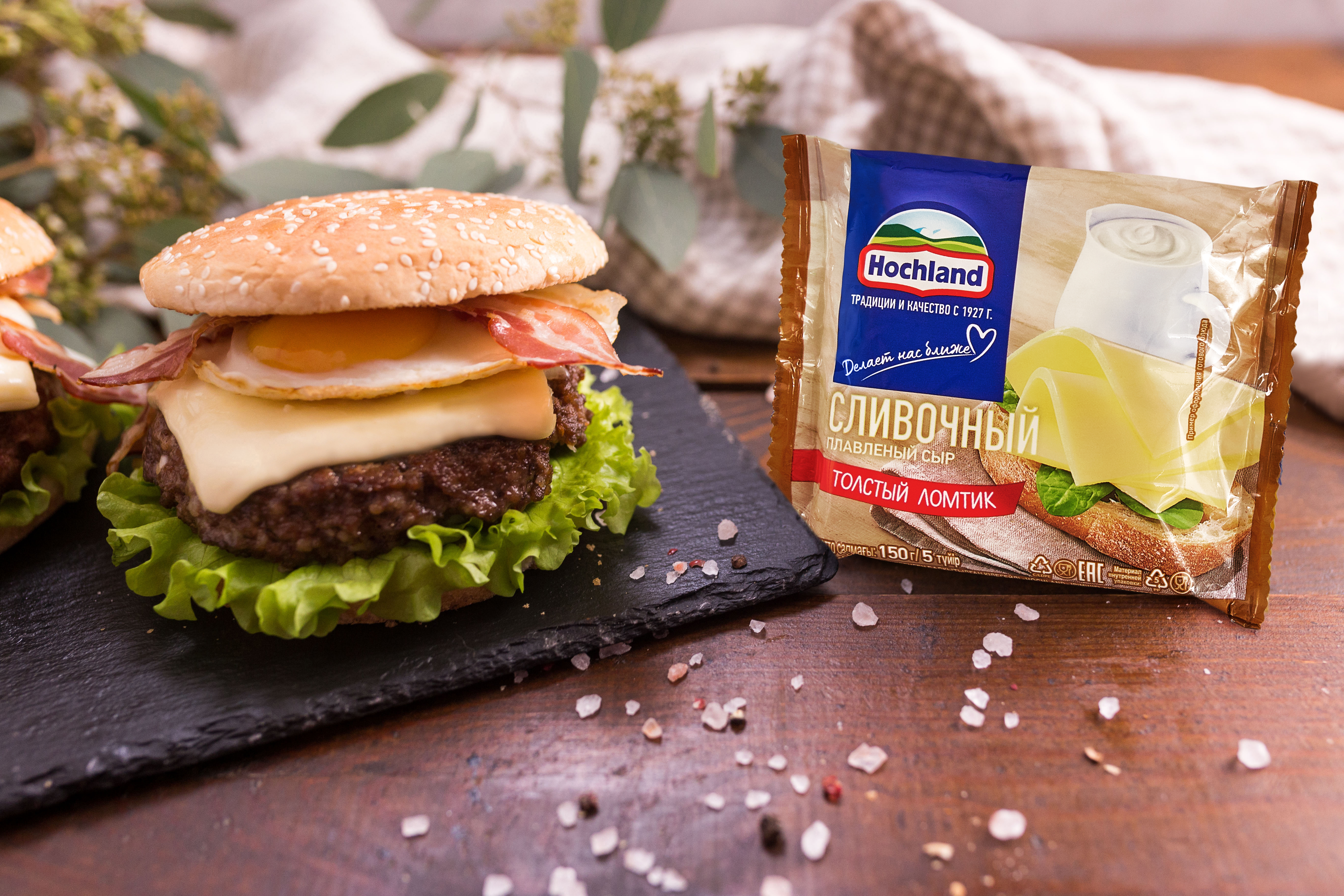 - Плавленый сыр Hochland сливочный классический — 2 ломтика