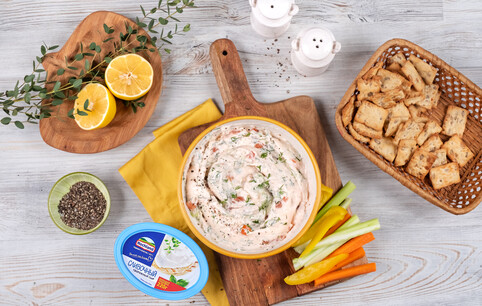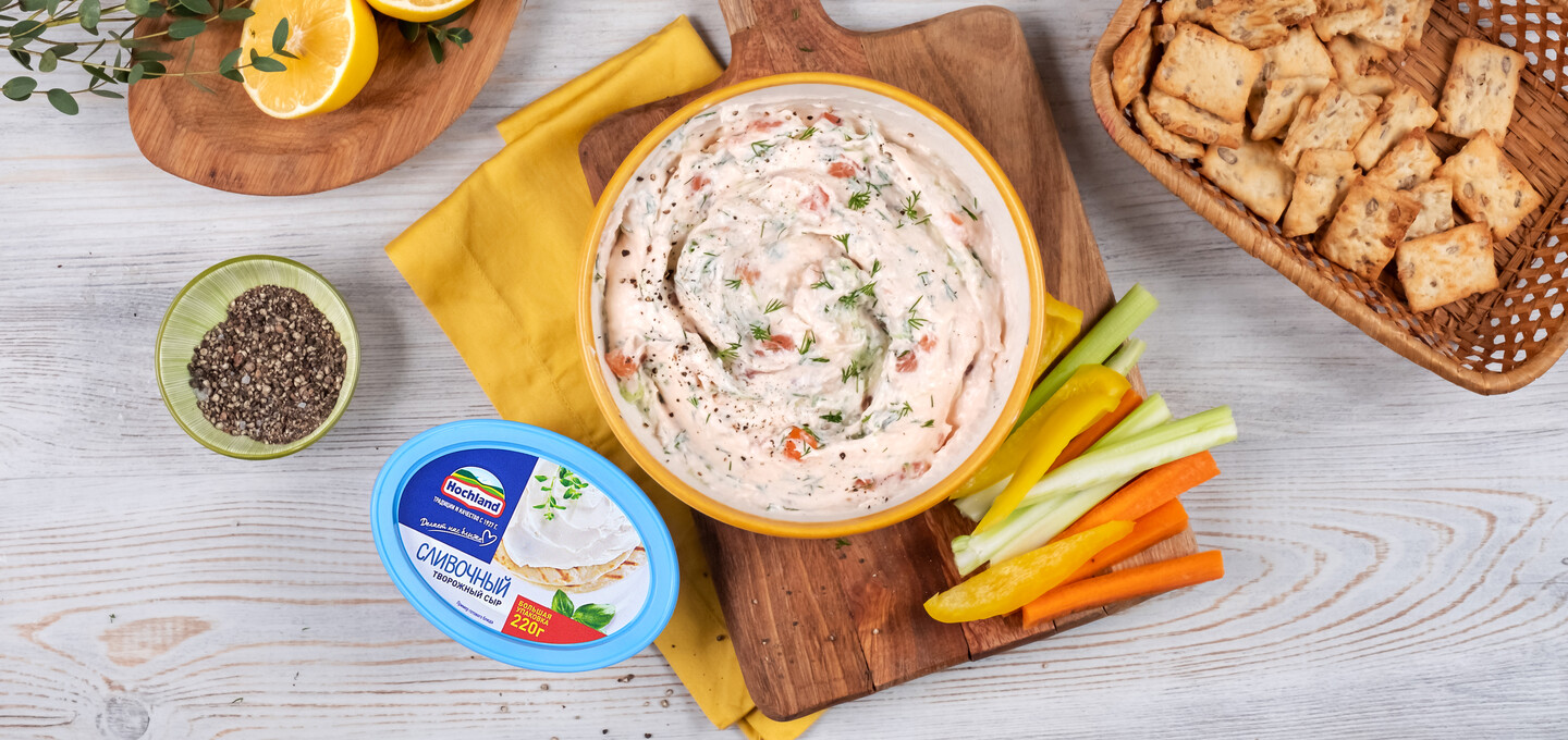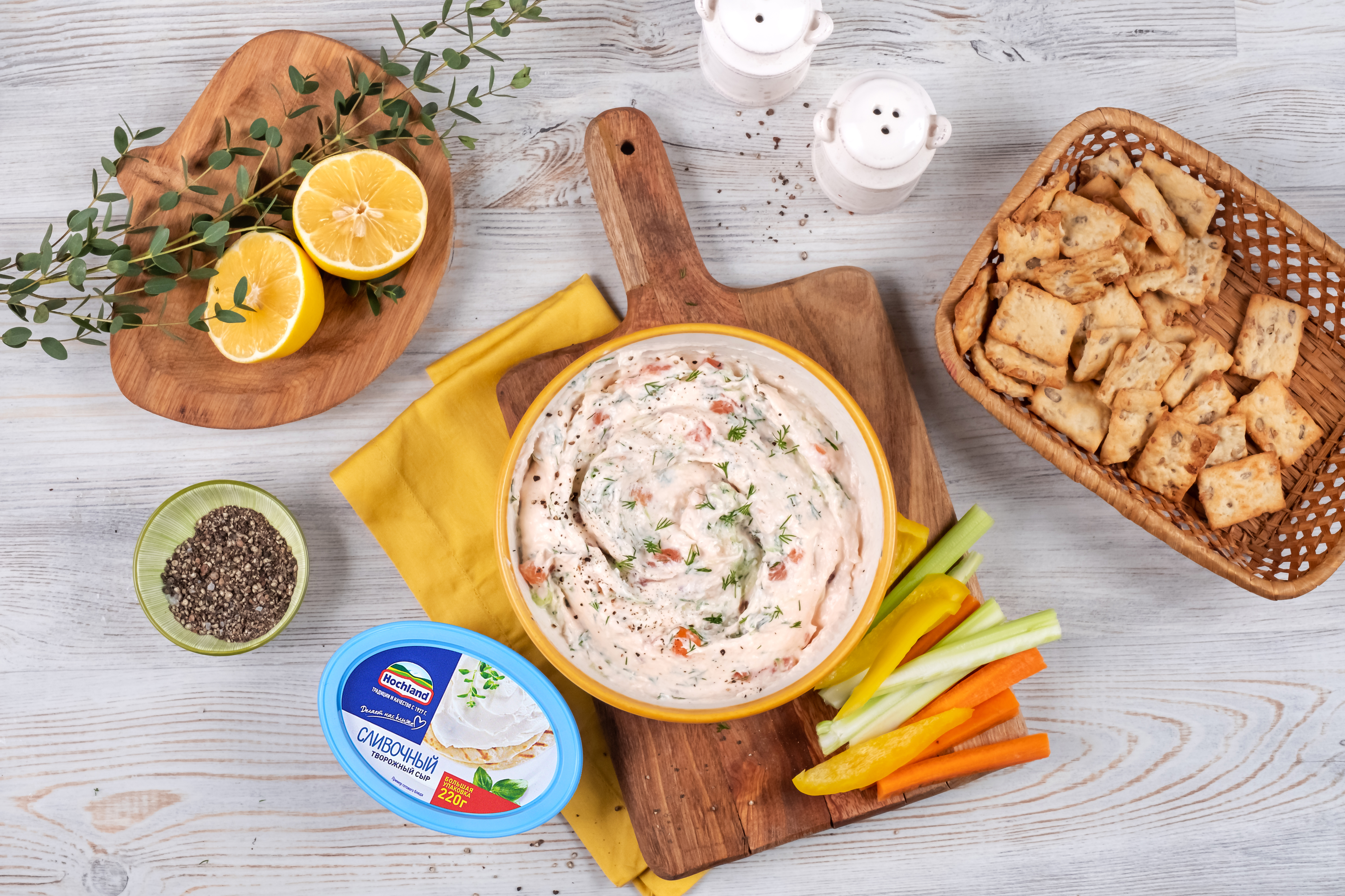 Подавайте дип с крекерами, хлебными палочками или овощами.