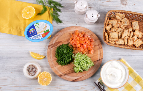 Лосось холодного копчения мелко нарежьте. Огурец натрите на мелкой терке. Порубите укроп.