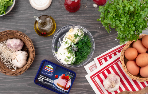 - 150 г творожного сыра Hochland «Для кулинарии»