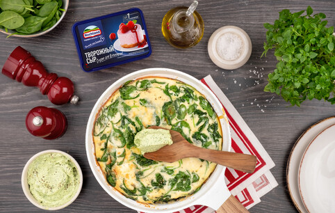 Подавайте фриттату к столу теплой или остывшей вместе с укропным песто.