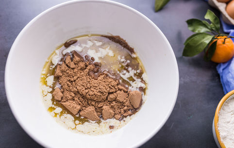 Вливаем массу поверх остывшей основы и равномерно распределяем.