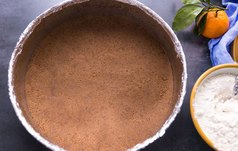 Печенье измельчаем в крошку, смешиваем с растопленным маслом.
