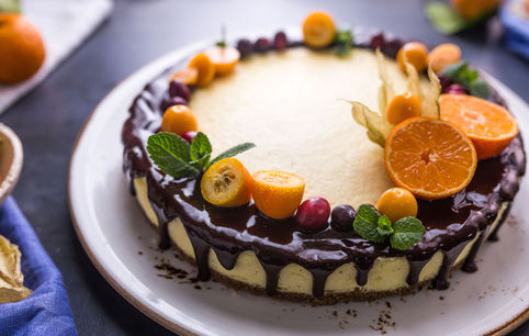 Готовый чизкейк оставляем в приоткрытой духовке на 1 час. Отделяем ножом от стенок формы. Даем остыть при к. т., затем убираем в холодильник на 6 часов. Извлекаем чизкейк из формы и украшаем по своему вкусу.