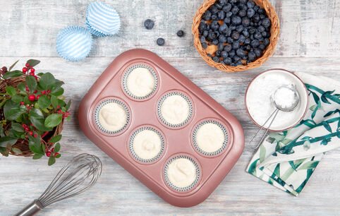 Разложите тесто в 12 формочек для кексов с бумажными вкладышами. Поставьте в духовку, разогретую до 180 °С, и выпекайте кексы 25 мин. Остудите.
