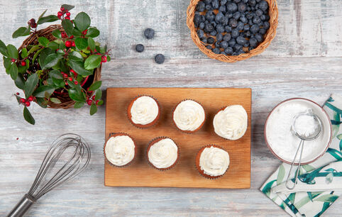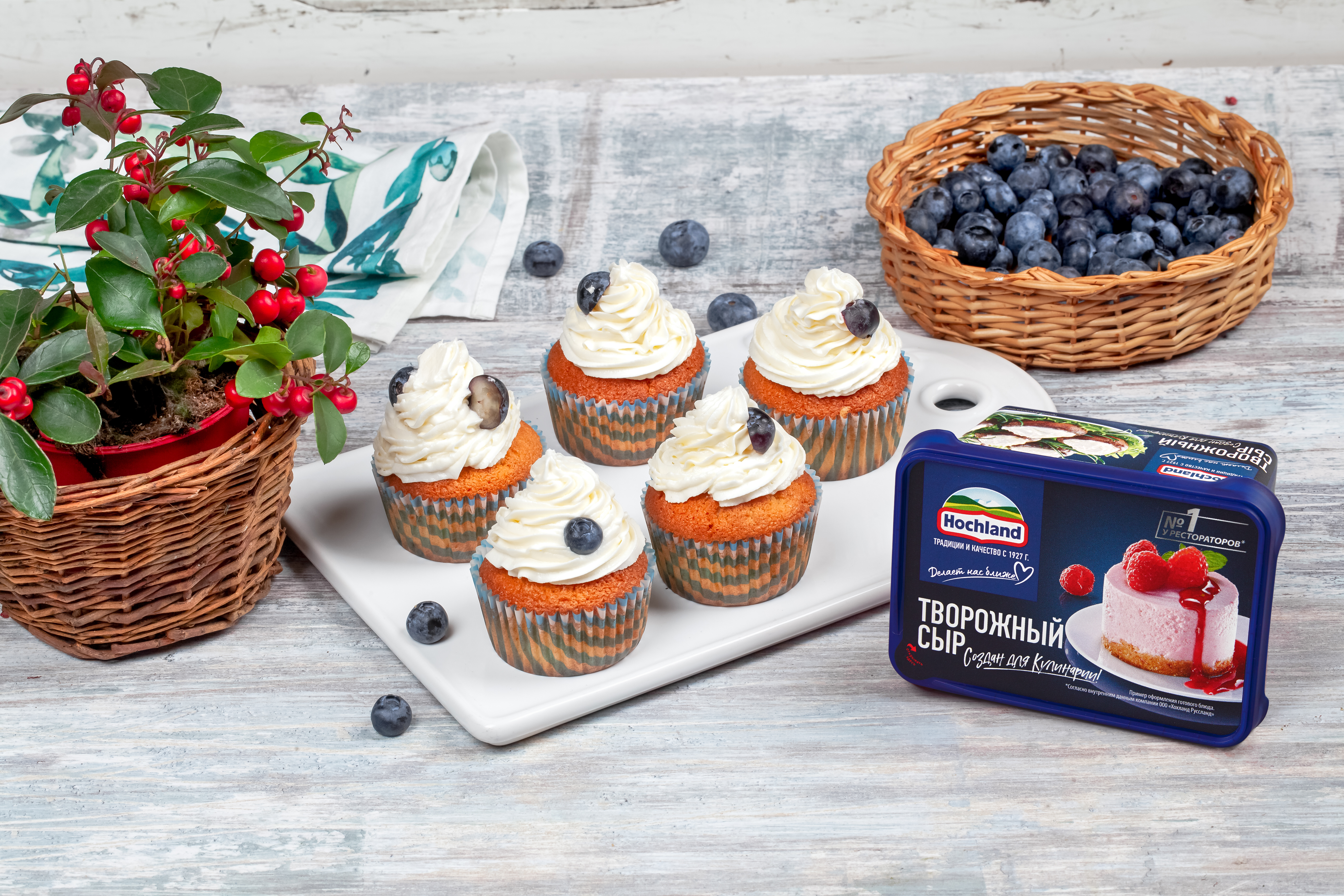 Для крема взбейте сливочное масло комнатной температуры с сахарной пудрой до состояния легкого, пышного крема, 10 мин. Добавьте творожный сыр комнатной температуры и ванильный экстракт и снова взбейте, 2 мин. Переложите крем в кондитерский мешок и выдавите на капкейки. Украсьте капкейки декоративной посыпкой или ягодами и подавайте.