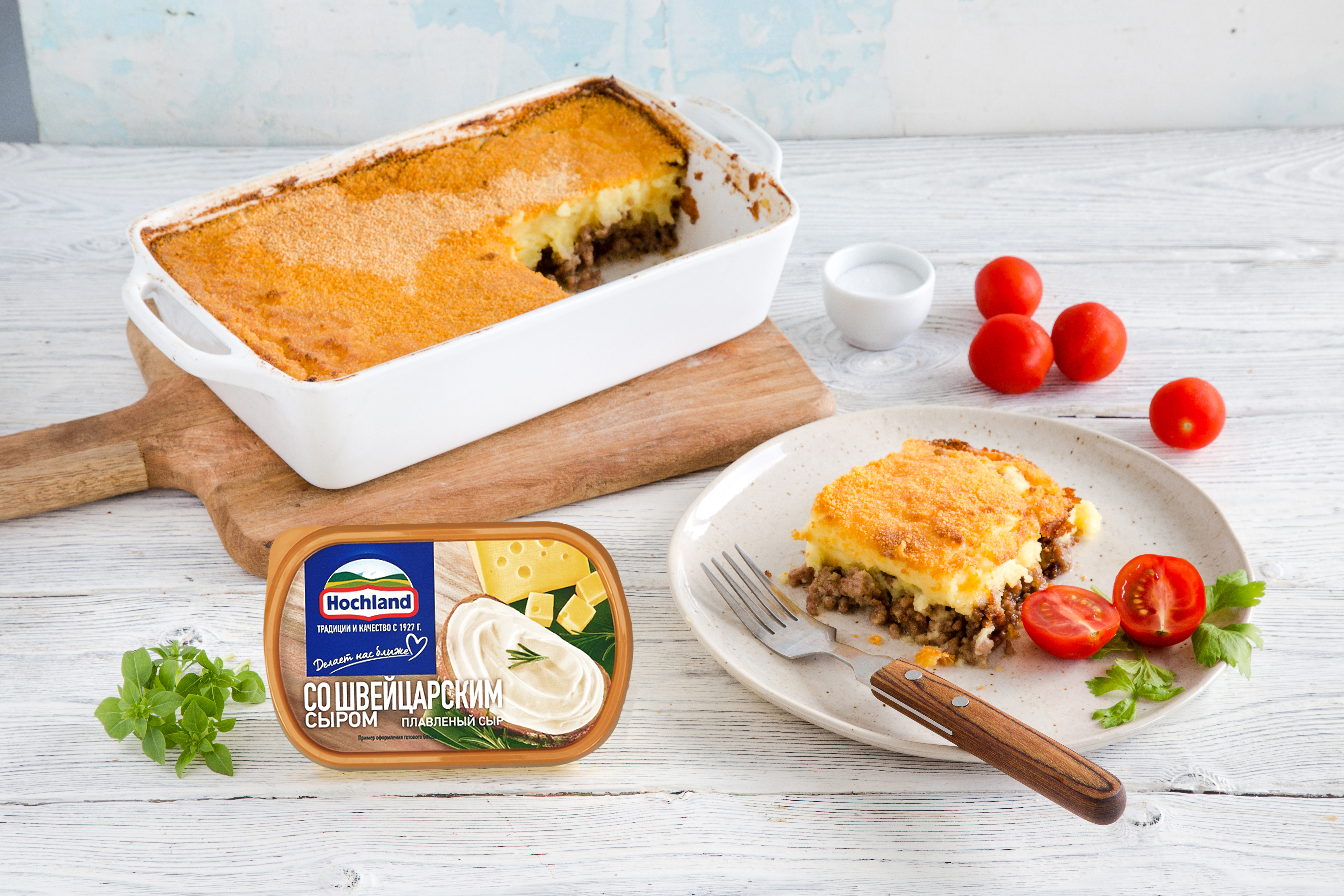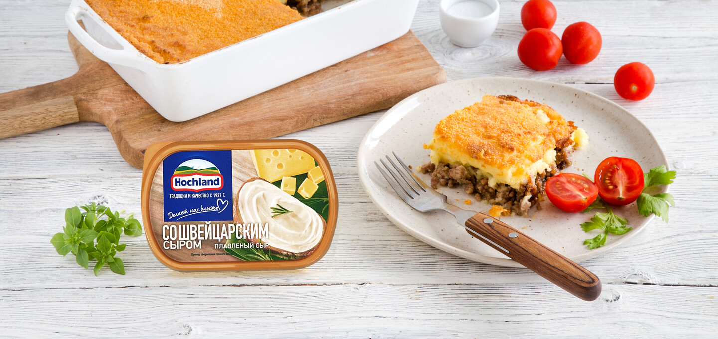 Картофельно-сырная запеканка с мясом