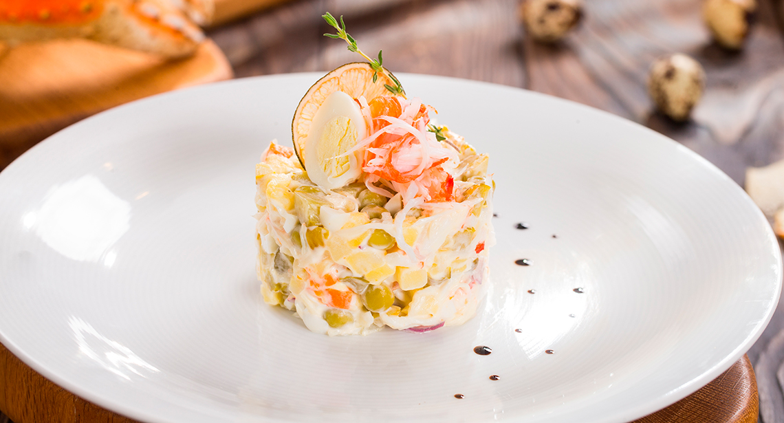 Лёгкий крабовый салат с творожным сыром и редисом