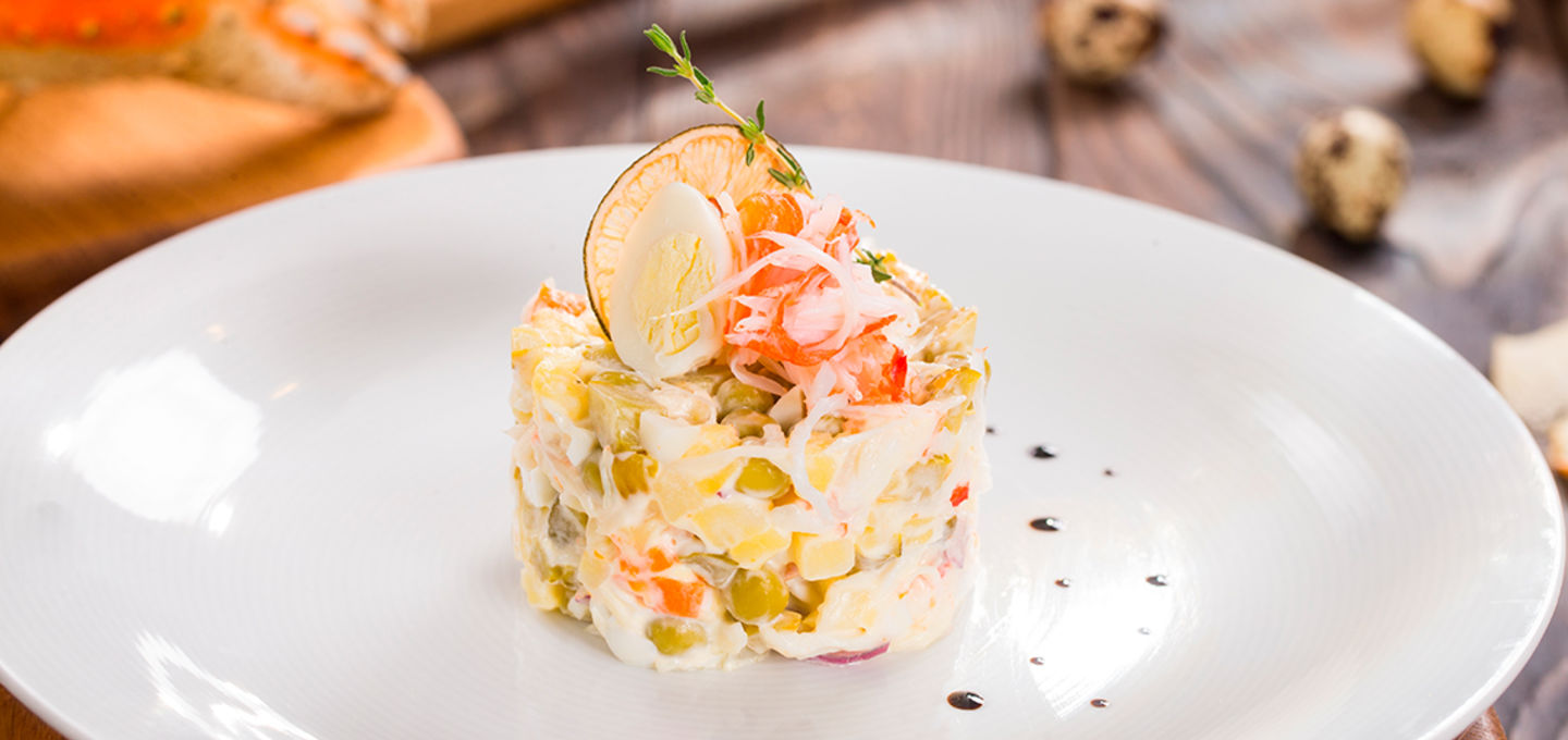 - Заправить салат сырным соусом и хорошо перемешать.