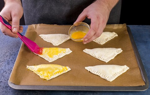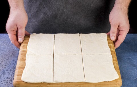 Раскатайте тесто и разрежьте на 9 одинаковых квадратов.