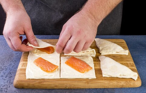 Сверните тесто с кусочком рыбы в аккуратный конвертик.