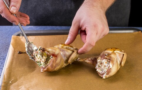 Выложите птицу на противень, смазанный маслом. Выложите на перепелок обжаренные сельдерей и морковь. Запекайте в разогретой до 200°С духовке около часа.