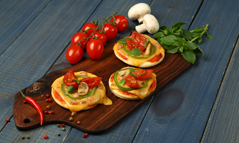 - Половину ломтиков Hochland выложить на соус, затем положить салями, бекон, кружки томатов и маслин. Сверху выложить оставшиеся ломтики Hochland. Выпекать в предварительно разогретой до 240–250 ˚С духовке 10 минут.