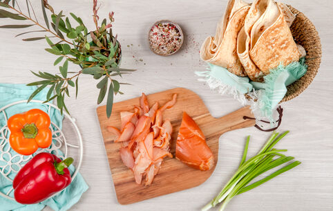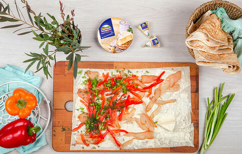 Ролл с копченой курицей, плавленым сыром и перцем