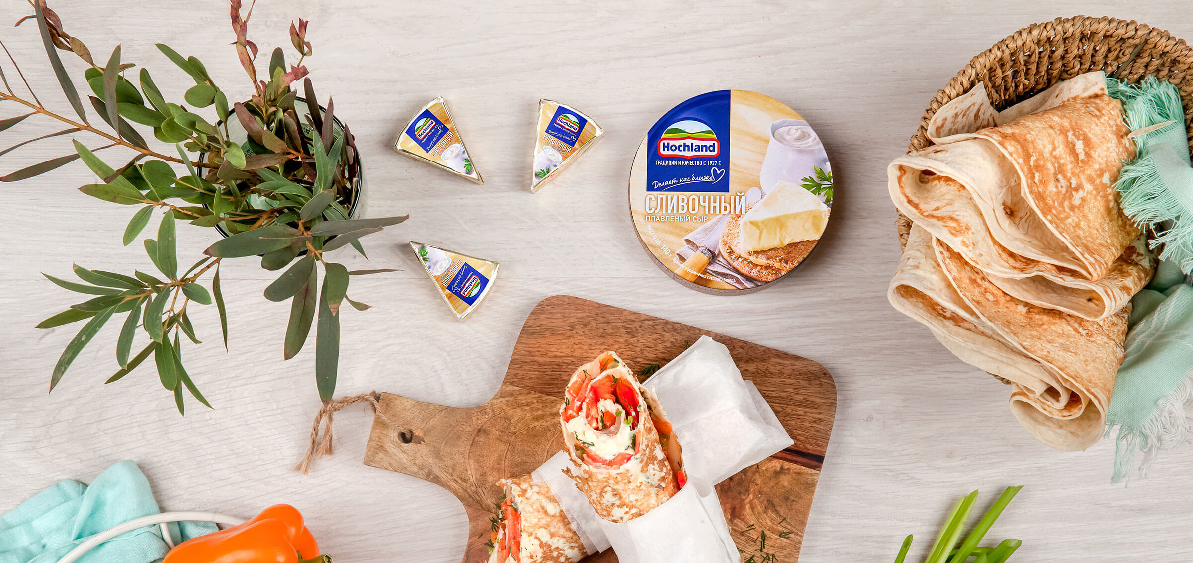 - 140 г плавленого сыра «Сливочный» Hochland в треугольниках