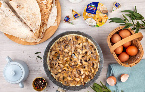 Взбейте яйца с солью и перцем. Как только грибы будут готовы, вылейте яйца в сковороду и жарьте омлет, потряхивая сковороду, до готовности.