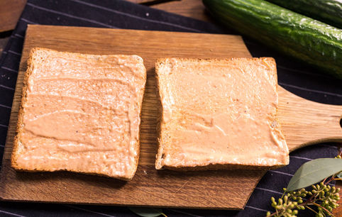 Смазываем соусом тосты с одной стороны.