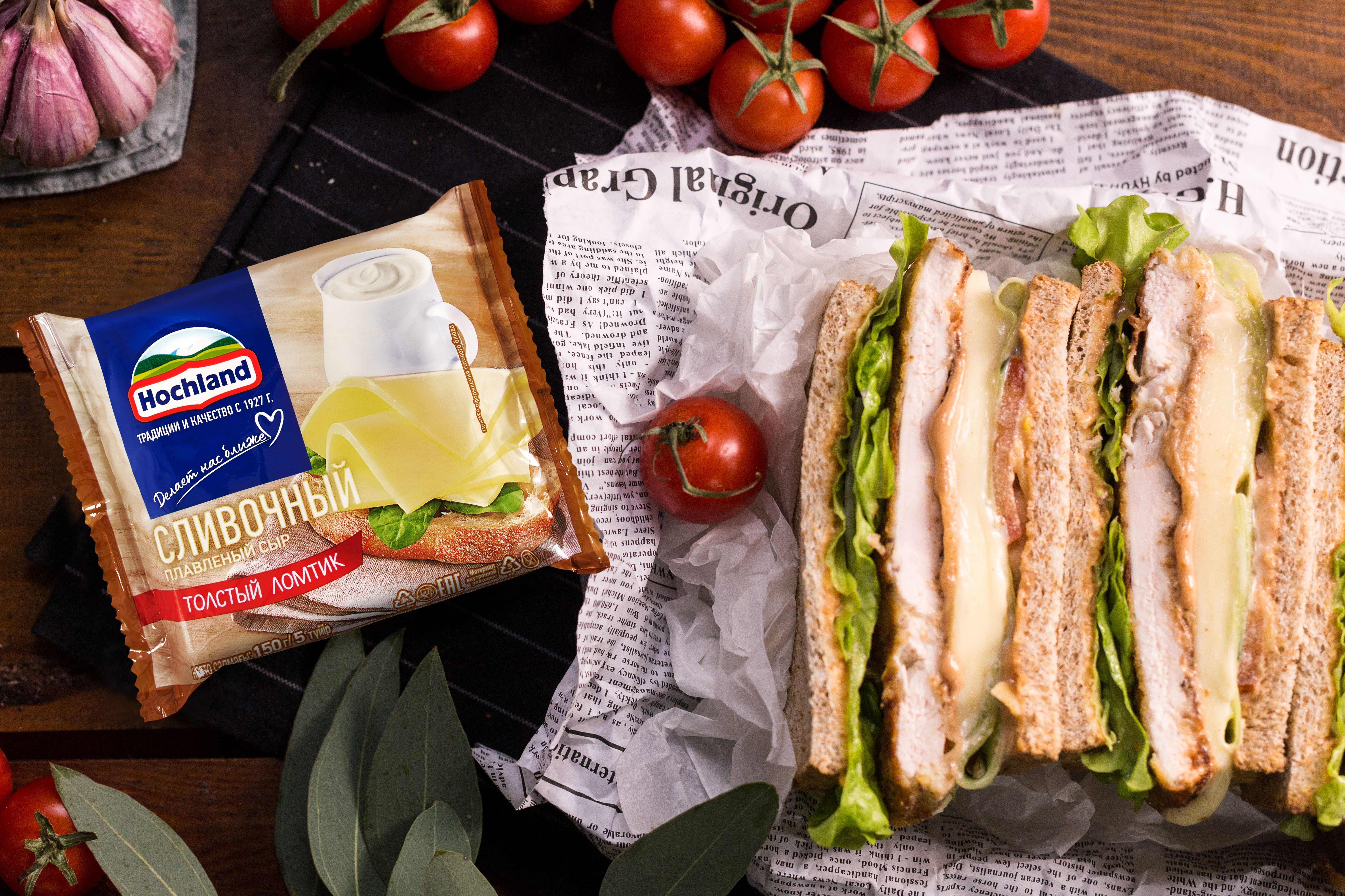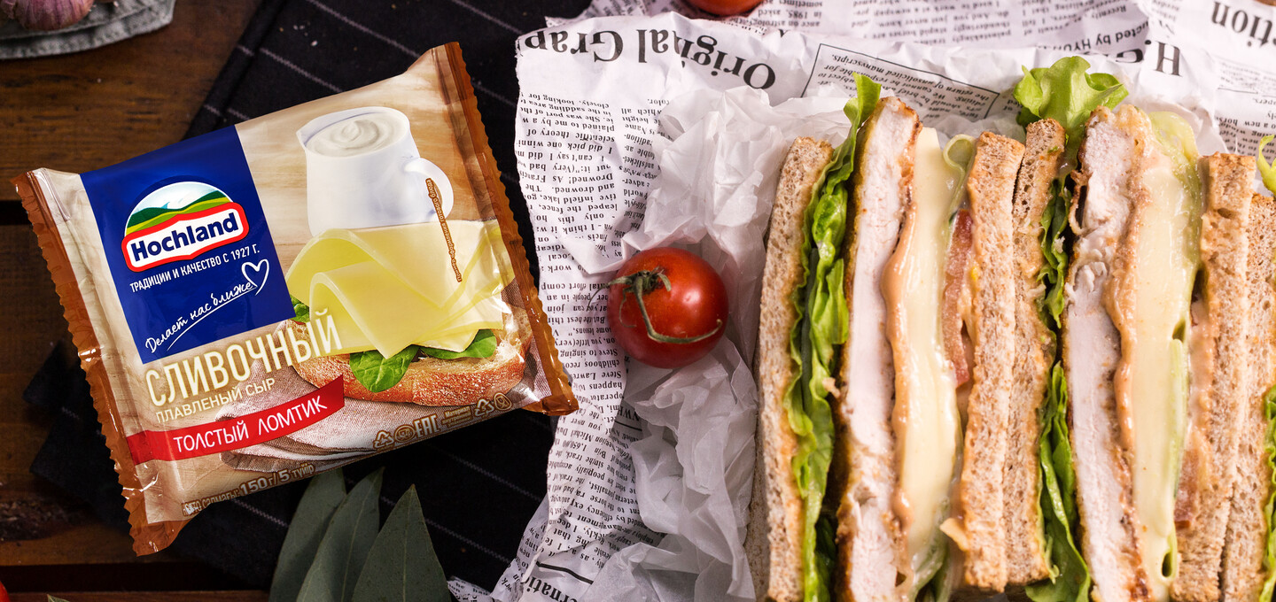 - Плавленый сыр Hochland сливочный классический — 4 ломтика