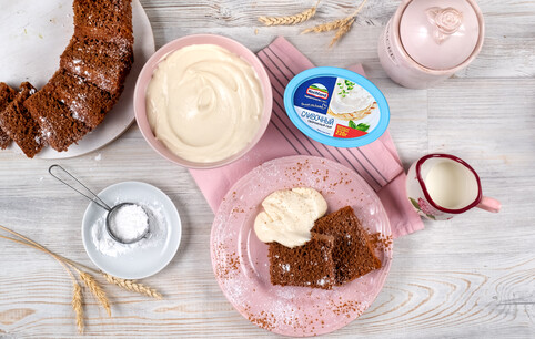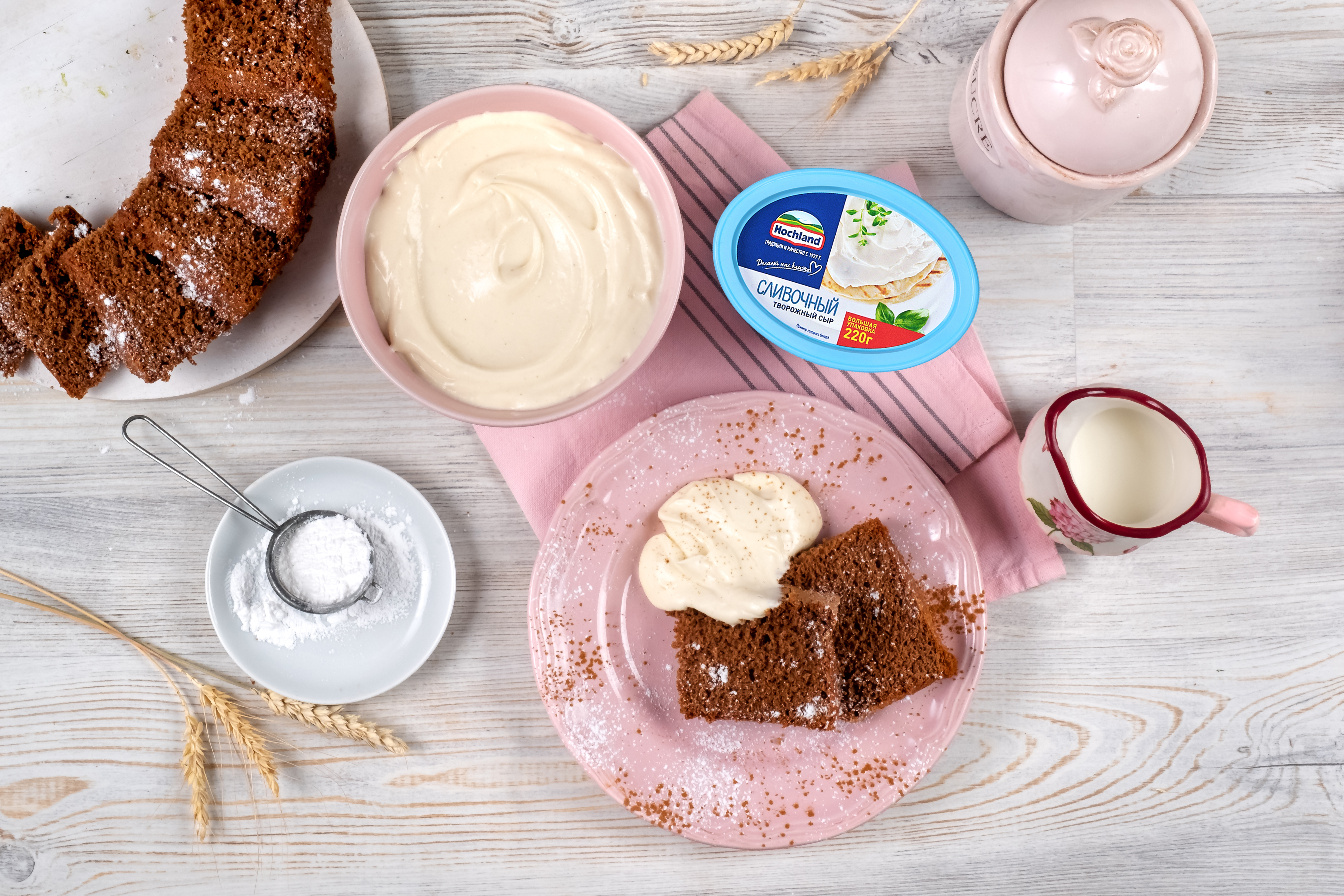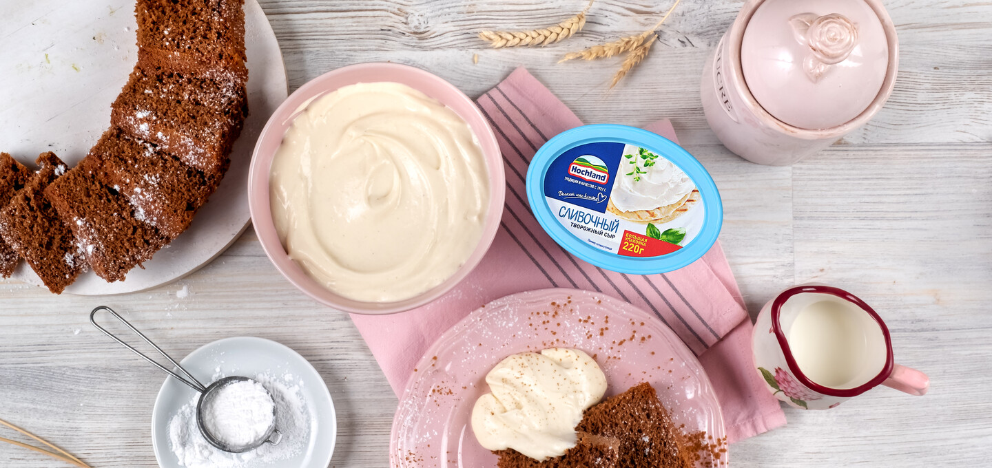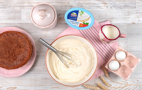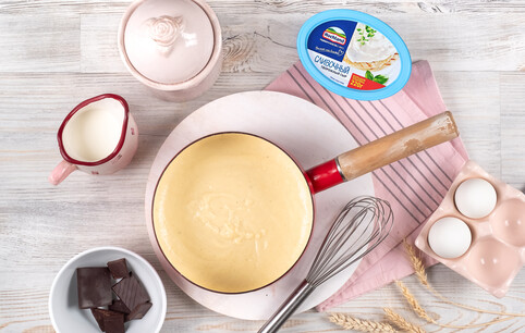 Смешайте творожный сыр, сливки и остывший соус и взбейте миксером до однородности.