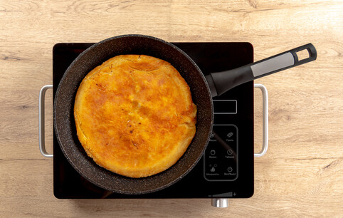В сковороде растопите сливочное и растительное масла. Обжаривайте лепешку по 10минут на среднем и медленном огне с двух сторон до образования румяной корочки.