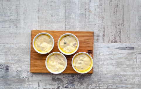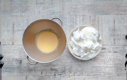 Отделите белки от желтков. Взбейте желтки с 2–3 ст. л. оливкового масла. Белки взбейте отдельно в крутую пену.