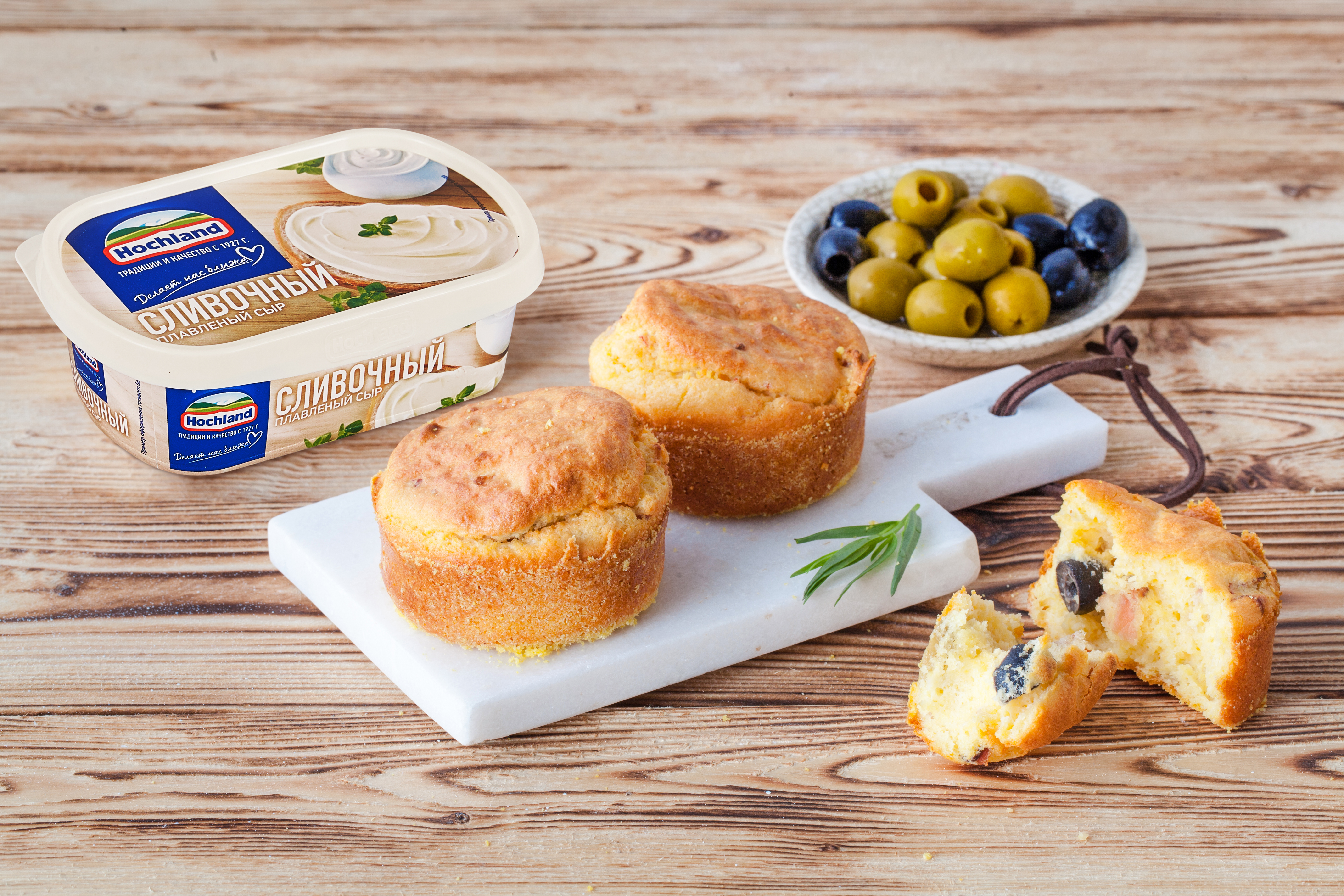 Смажьте оливковым маслом формочки для маффинов небольшого размера, присыпьте кукурузной крупой. Разложите тесто. Поставьте маффины в духовку, выпекайте 25–30 мин. Подавайте теплыми или остывшими.