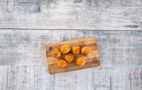 Обваливайте сначала в муке (стряхивайте лишнюю), потом в яйце (стряхивайте лишнее), затем в сухарях (стряхивайте лишние). Аккуратно опускайте во фритюр и жарьте, аккуратно переворачивая шумовкой, до золотисто-коричневой корочки.
