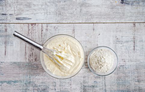Включите миксер на минимальную скорость и постепенно добавьте муку. Не взбивайте, дайте муке просто смешаться с остальными ингредиентами.