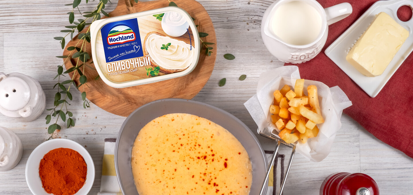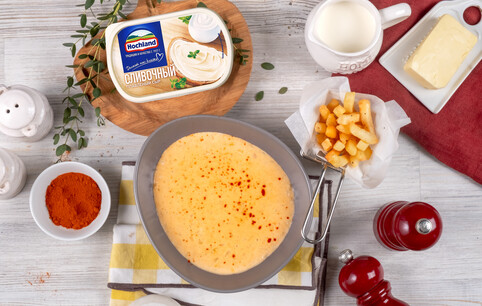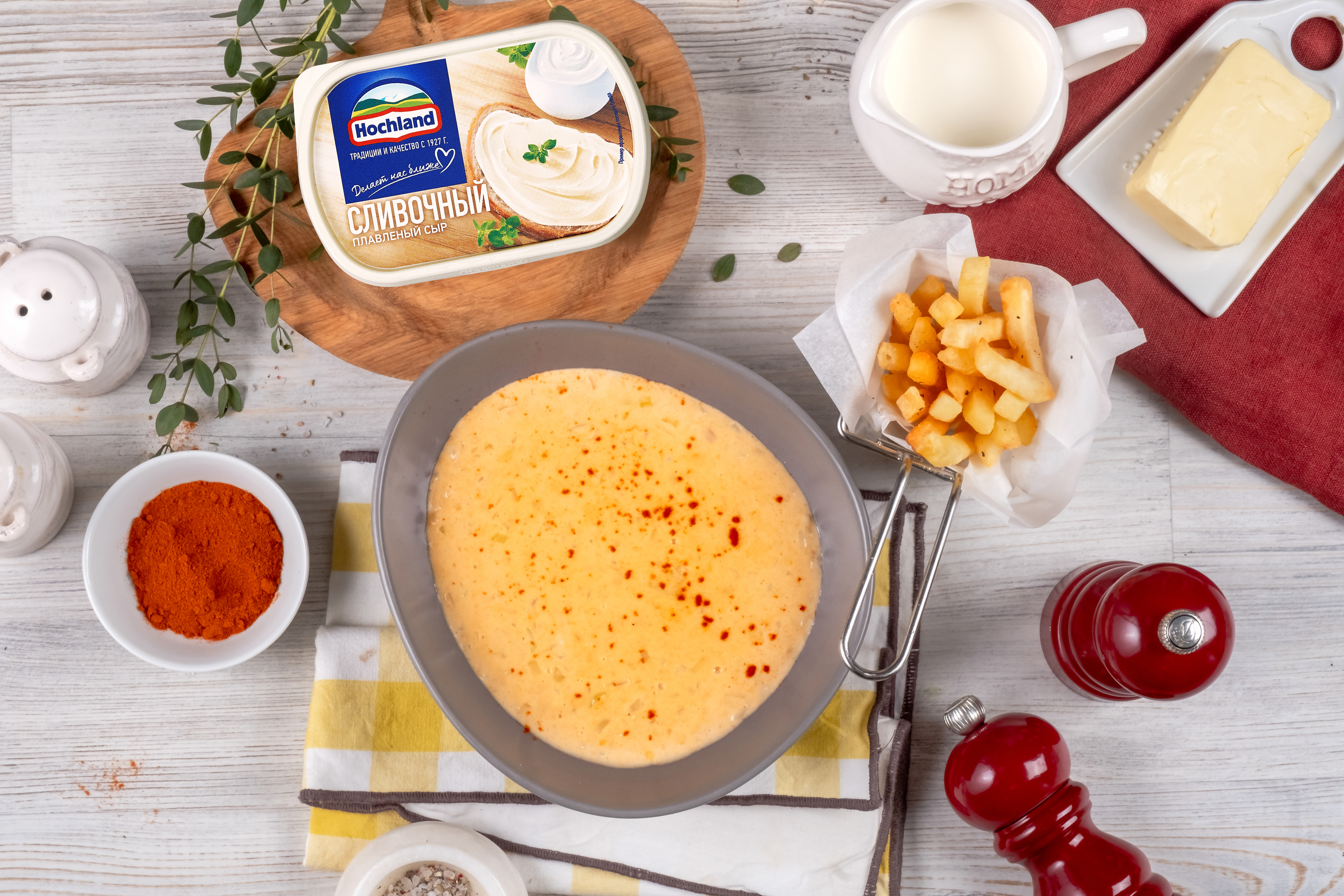 Добавьте плавленый сыр и, помешивая, доведите соус до кипения, сыр должен полностью раствориться. Готовьте 2 мин. и снимите соус с огня.