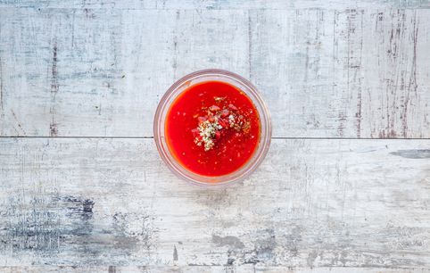 Разогрейте духовку до 220 °С. Для соуса измельчите чеснок, порубив его ножом с щепоткой соли и прованскими травами. Смешайте с помидорами вместе с соком и 120 мл воды. Поперчите, еще посолите и оставьте, пока готовится все остальное.