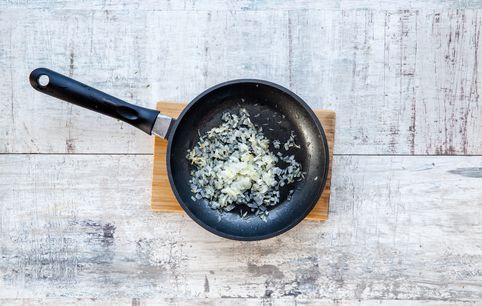 Для фрикаделек очистите и как можно мельче нарежьте лук. Обжарьте его в 3 ст. л. оливкового масла до золотистого цвета, 7 мин. Снимите с огня и остудите.