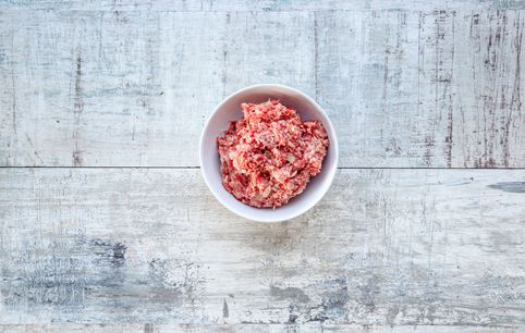Смешайте говяжий фарш с жареным луком и чуть взбитым яйцом, посолите и поперчите, перемешайте до однородности.