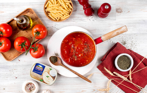 Добавьте плавленый сыр и, помешивая, дождитесь, пока он полностью растворится. Посолите соус, поперчите и снимите с огня. Подавайте к пасте.