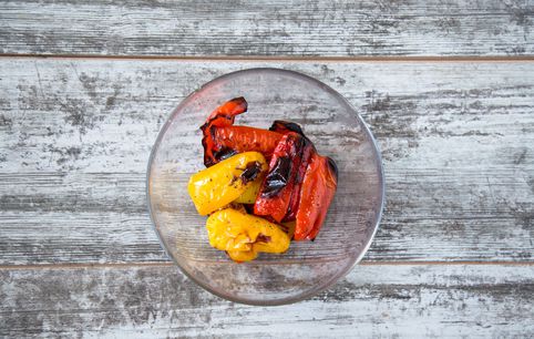 Остывшие перцы очистите от кожицы и обсушите на бумажных полотенцах.