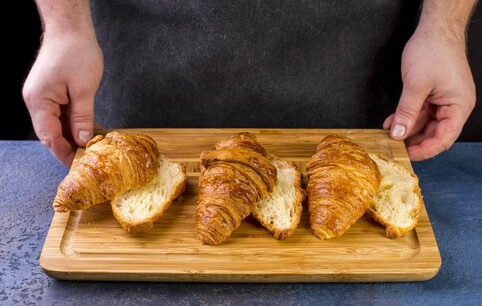 На круассанах сделайте надрез в центре. Раскройте его пополам.