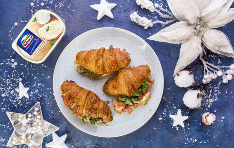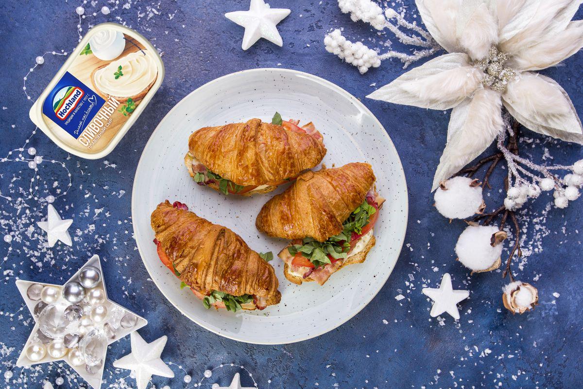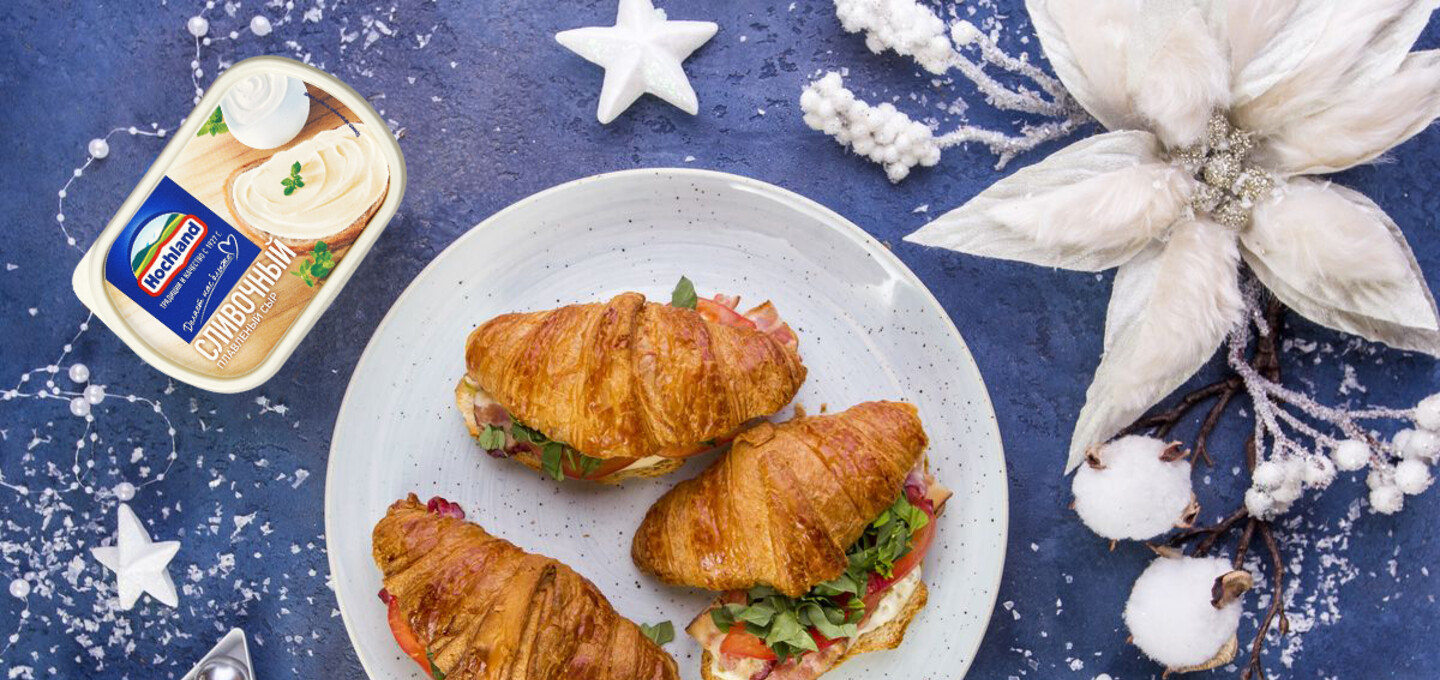 Смажьте круассаны плавленым сыром Hochland «Сливочный».