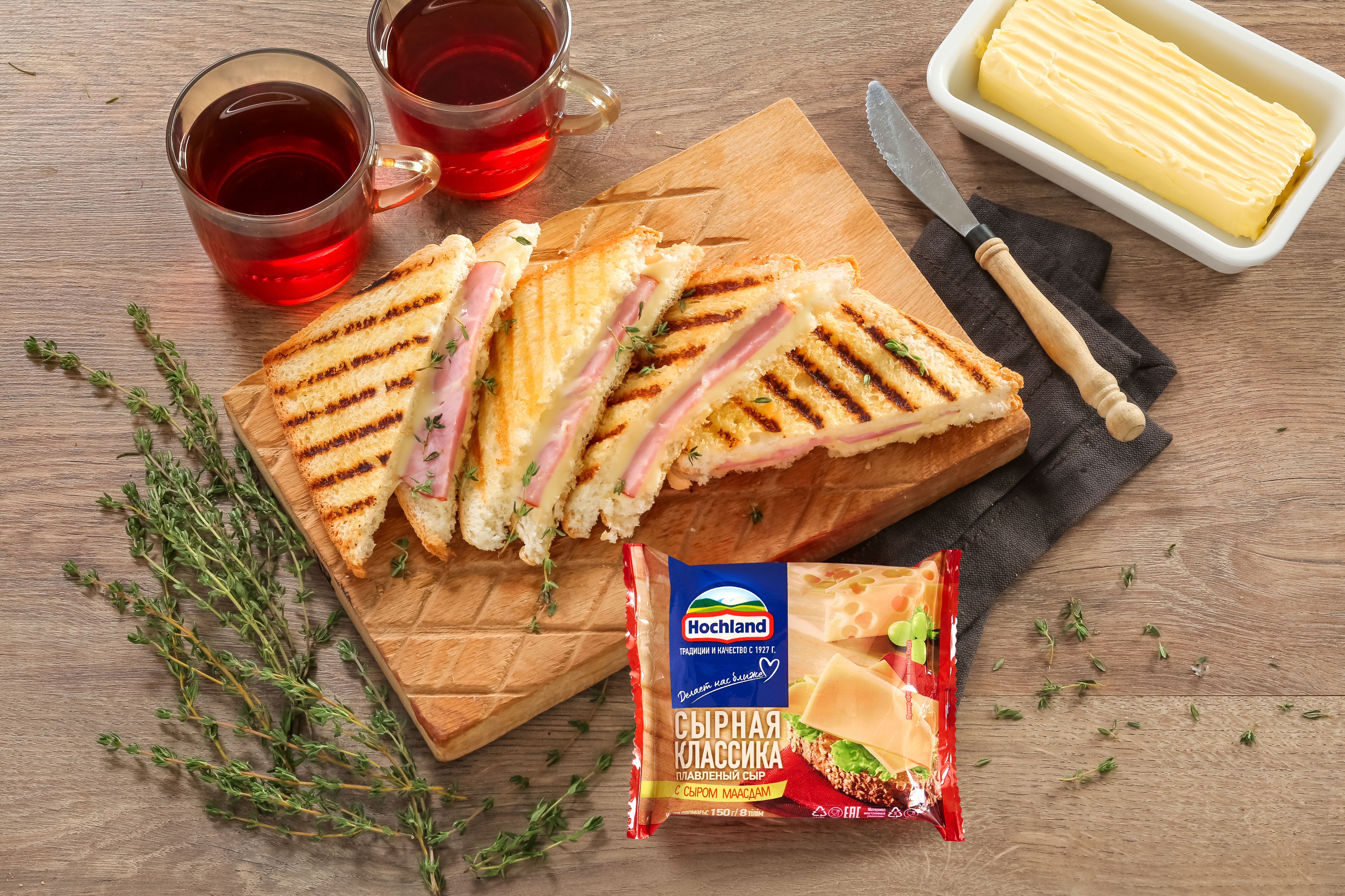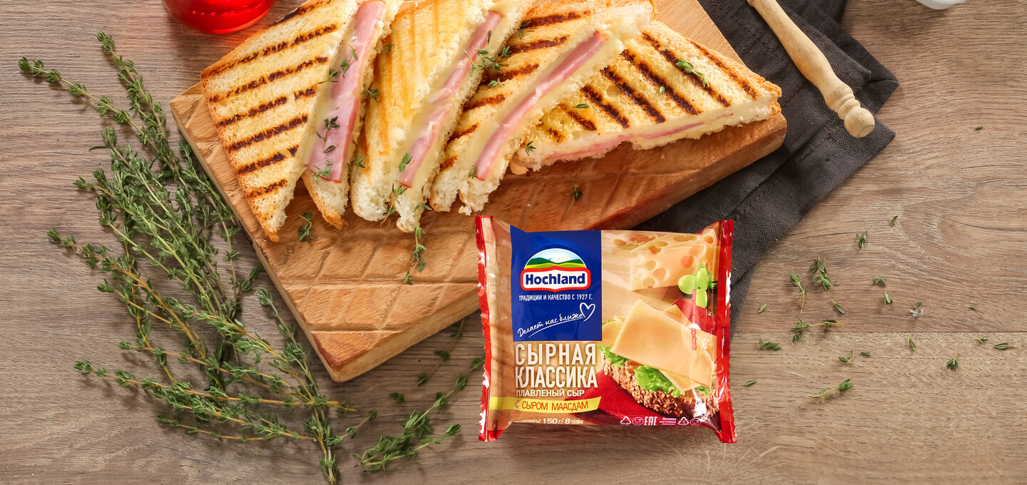 - 4 ломтика сыра Hochland «Сырная классика»